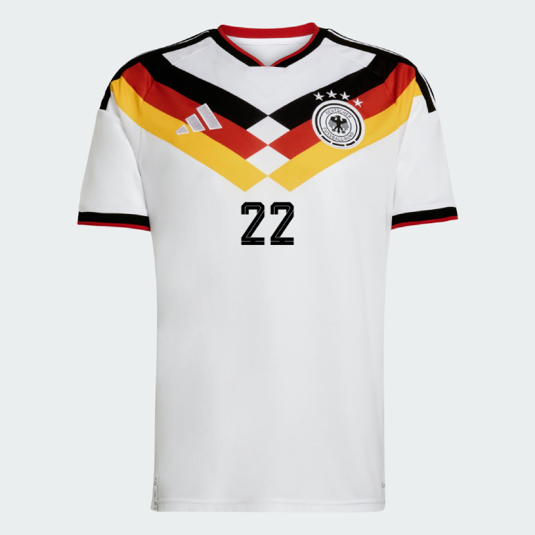 We provide Germany Home RAUM 22 Jersey 2026. Show your support for Germany with the latest Germany World Cup Soccer Kits.